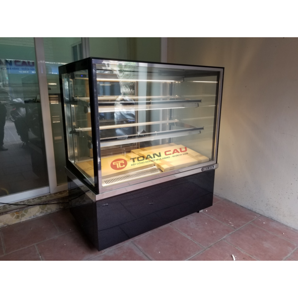 Thiết kế kính vuông 3 tầng giúp các bạn có thể tận dụng không gian trưng bày nhiều bánh ngọt. Ngoài ra, các bạn cũng có thể trưng bày trái cây hay đồ uống trong tủ.